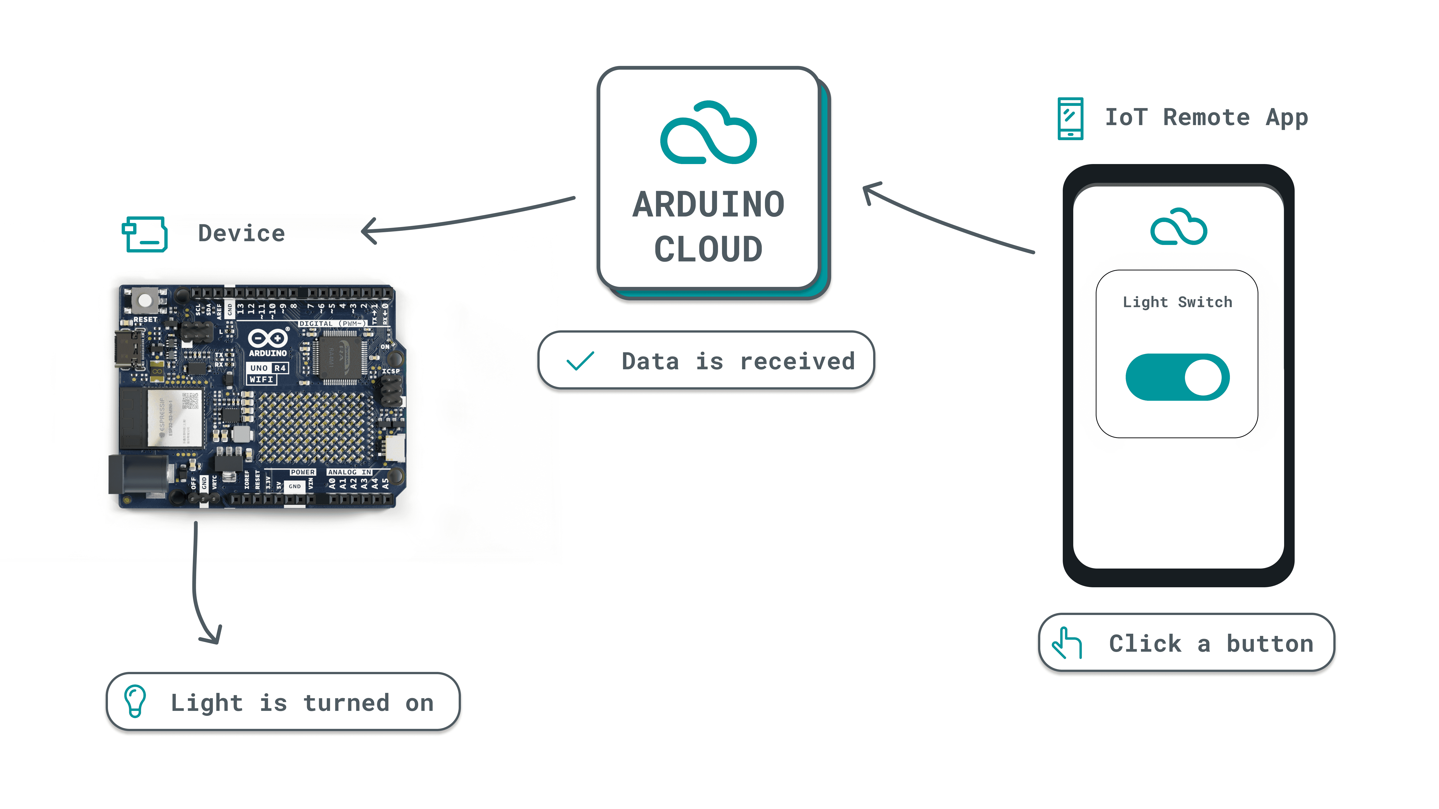 Networking code and data synchronizing is automatically done, so just focus on the project, and let the Arduino Cloud handle the rest.