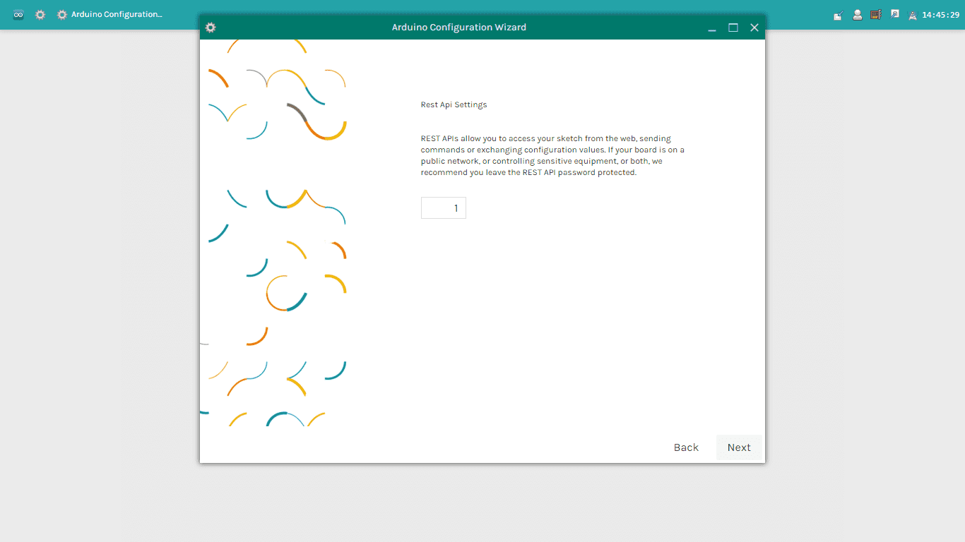 REST is an acronym for "Representational State Transfer". It is a software architecture that exposes various parts of the Arduino hardware through URLs. By default, the REST API access is password protected. It is possible to change this to access the services without a password, clicking on Open.