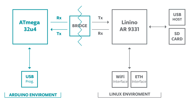In addition to the 32U4 chip, the Yún has an additional processor, an Atheros AR9331, which runs a distribution of Linux for embedded systems named OpenWrt-Yun, based on OpenWrt. A full install of Python® 2.7 is included as well.