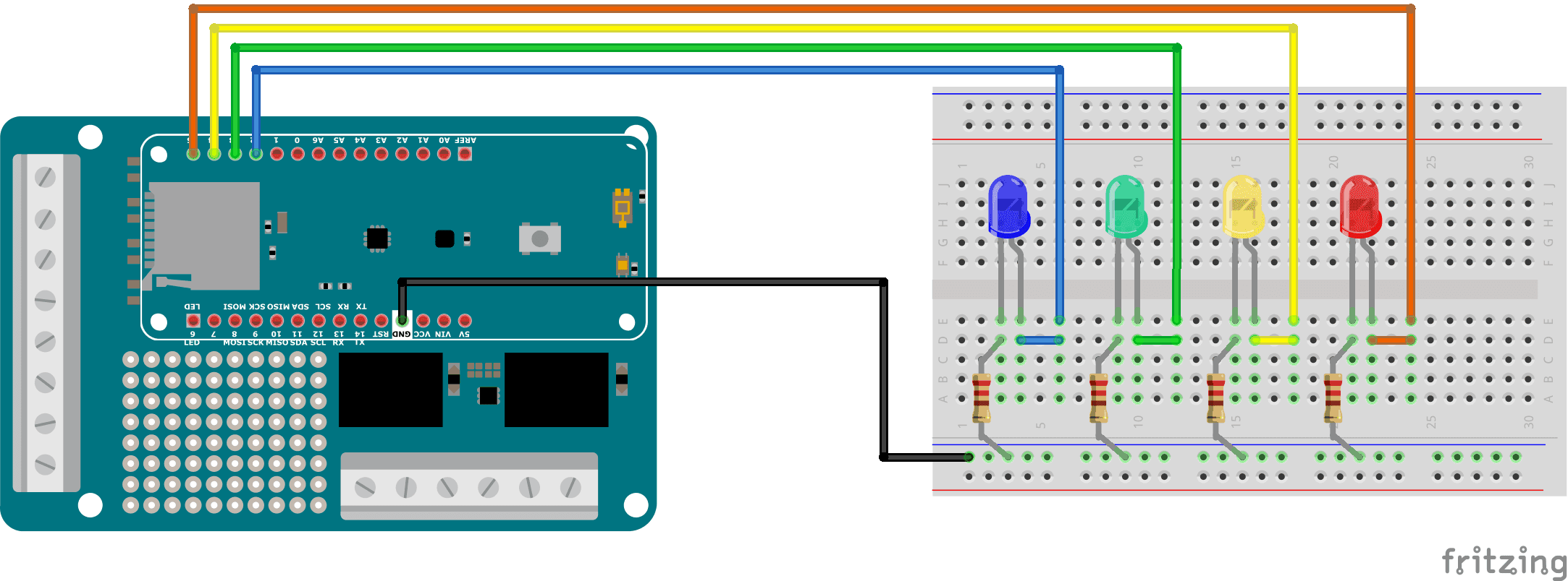 We gave you challenge for building a visual cue to your board, and offered you a possible solution. In the next chapter we will see how to read even more information from the ENV Shield and how to display it and export it to files for using it later with other software packages.