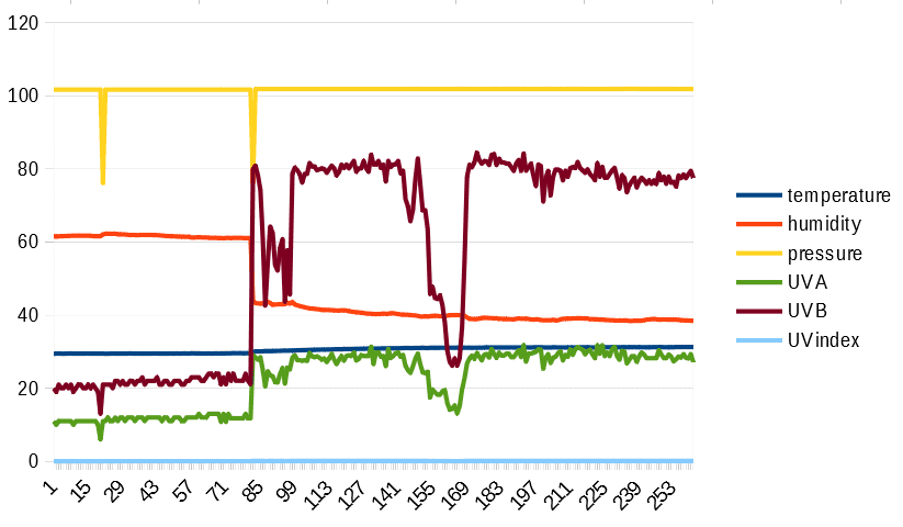 18// variables19float temperature = 0;20float humidity = 0;21float pressure = 0;22float UVA = 0;23float UVB = 0;24float UVIndex = 0;25