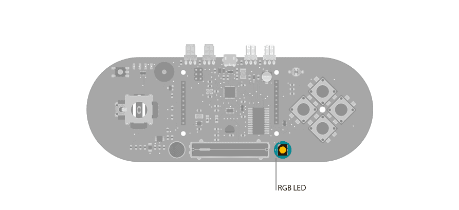 The RGB LED is comprised of three colors that represent the three primary colors: red, green, and blue.