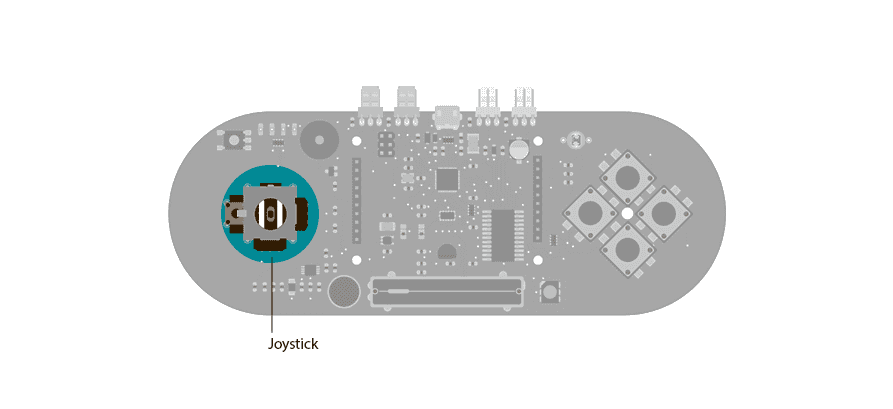 To read the position of the joystick, call Esplora.readJoystickX() and Esplora.readJoystickY(), saving the values in variables. This gives you values between -512 and 512 for each axis. When the joystick is centered, the X and Y axes will report 0.