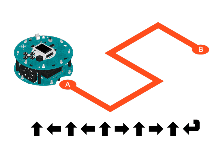 Press the buttons according to how you want the robot to move; the commands will be stored and executed later.