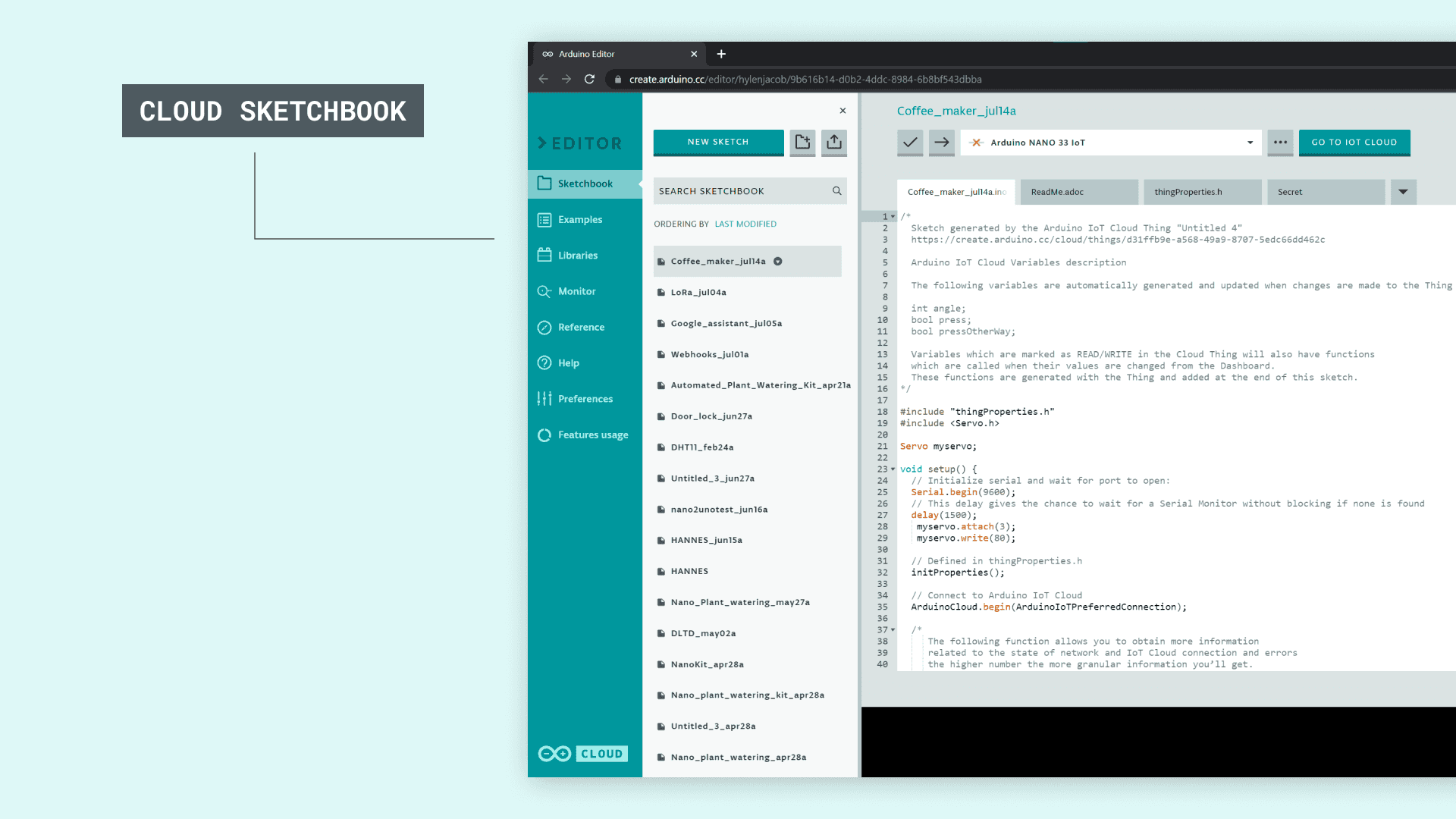 Create a Sketch in the Arduino Cloud