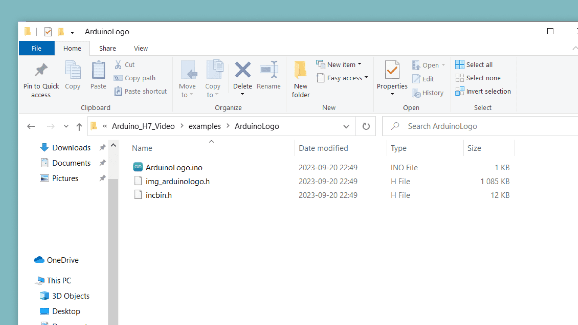 We will be using the example sketch "ArduinoLogo" as the basis for the sketch that lets us display an image. The example sketch can be found under File > Examples > Arduino_H7_Video > ArduinoLogo.