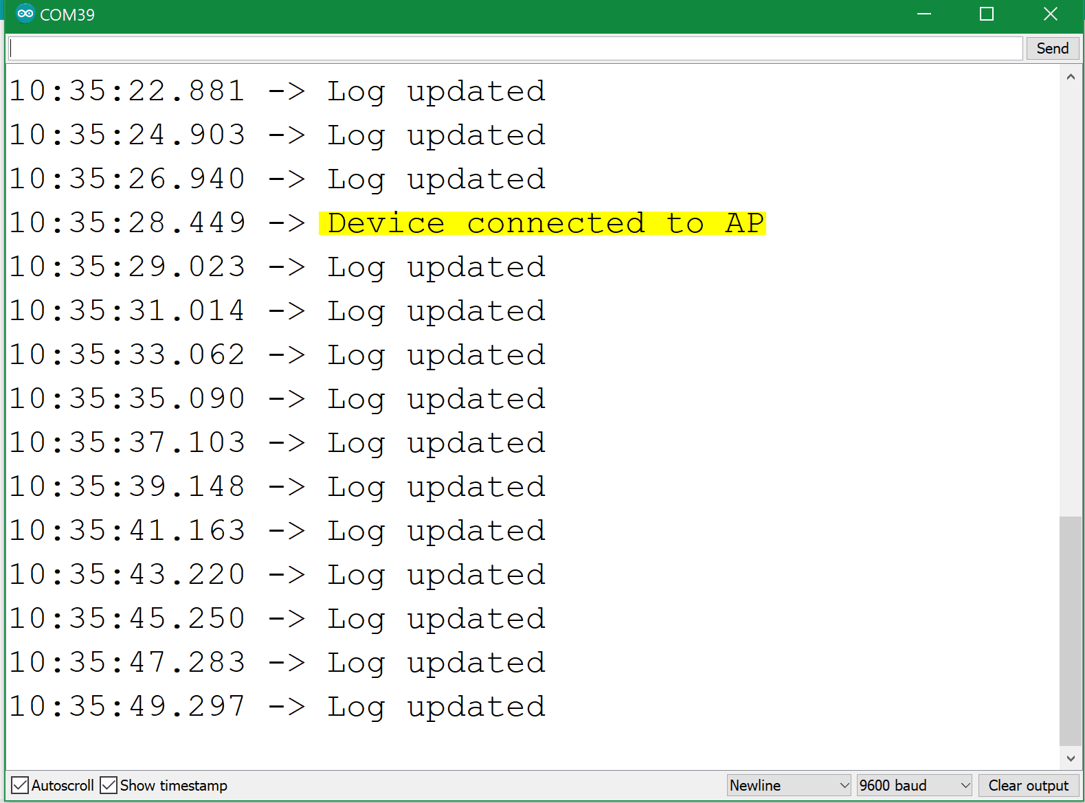function, the communication with the Wi-Fi module, the Environmental Shield and the SD card is checked, and the server is run on port 80, and we are notified on the Serial Port throughout