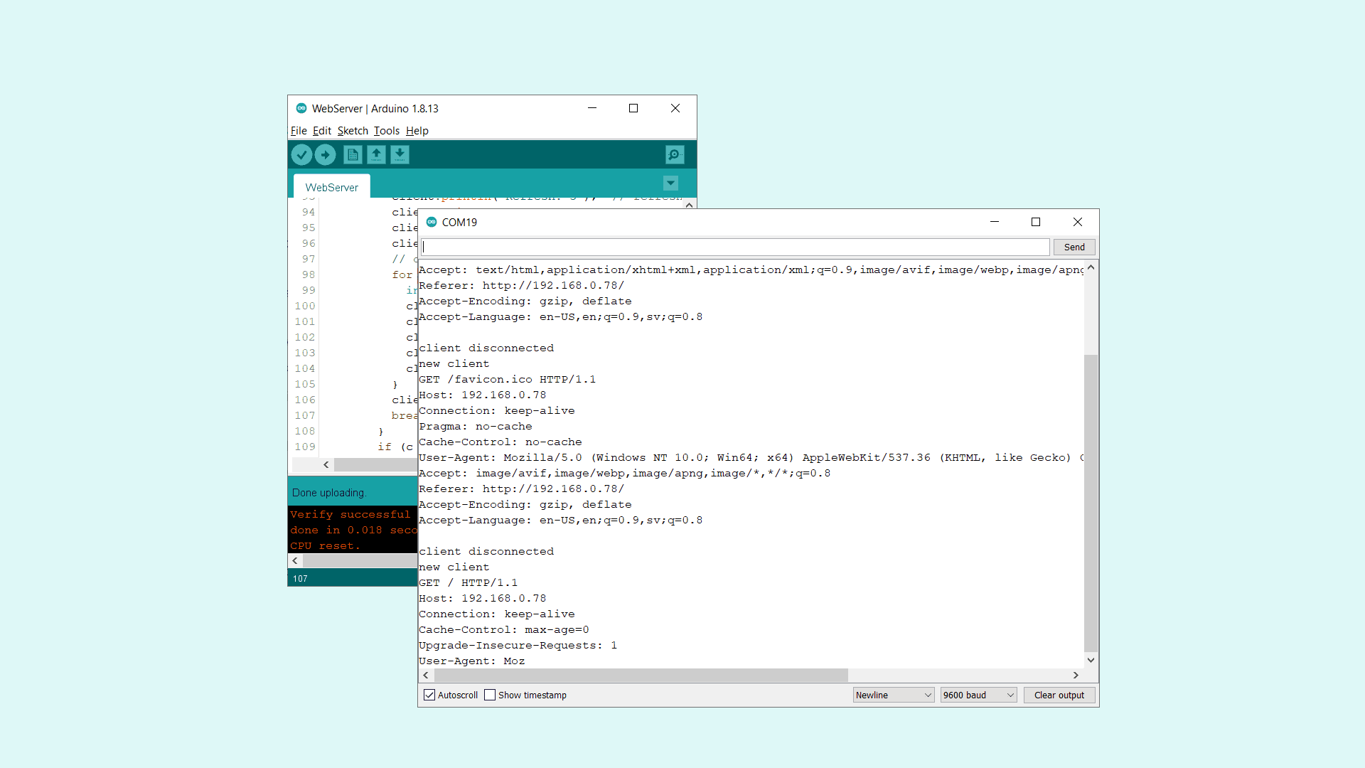 If we go back to the Serial Monitor, we can see information on what is going on when a client is connecting to the server.
