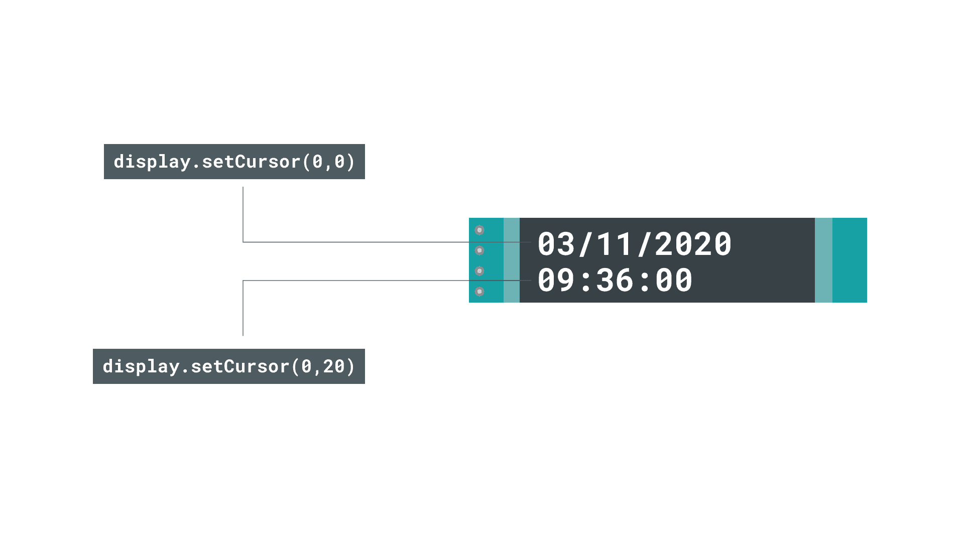 68 display.setCursor(0, 18); //change cursor to second row