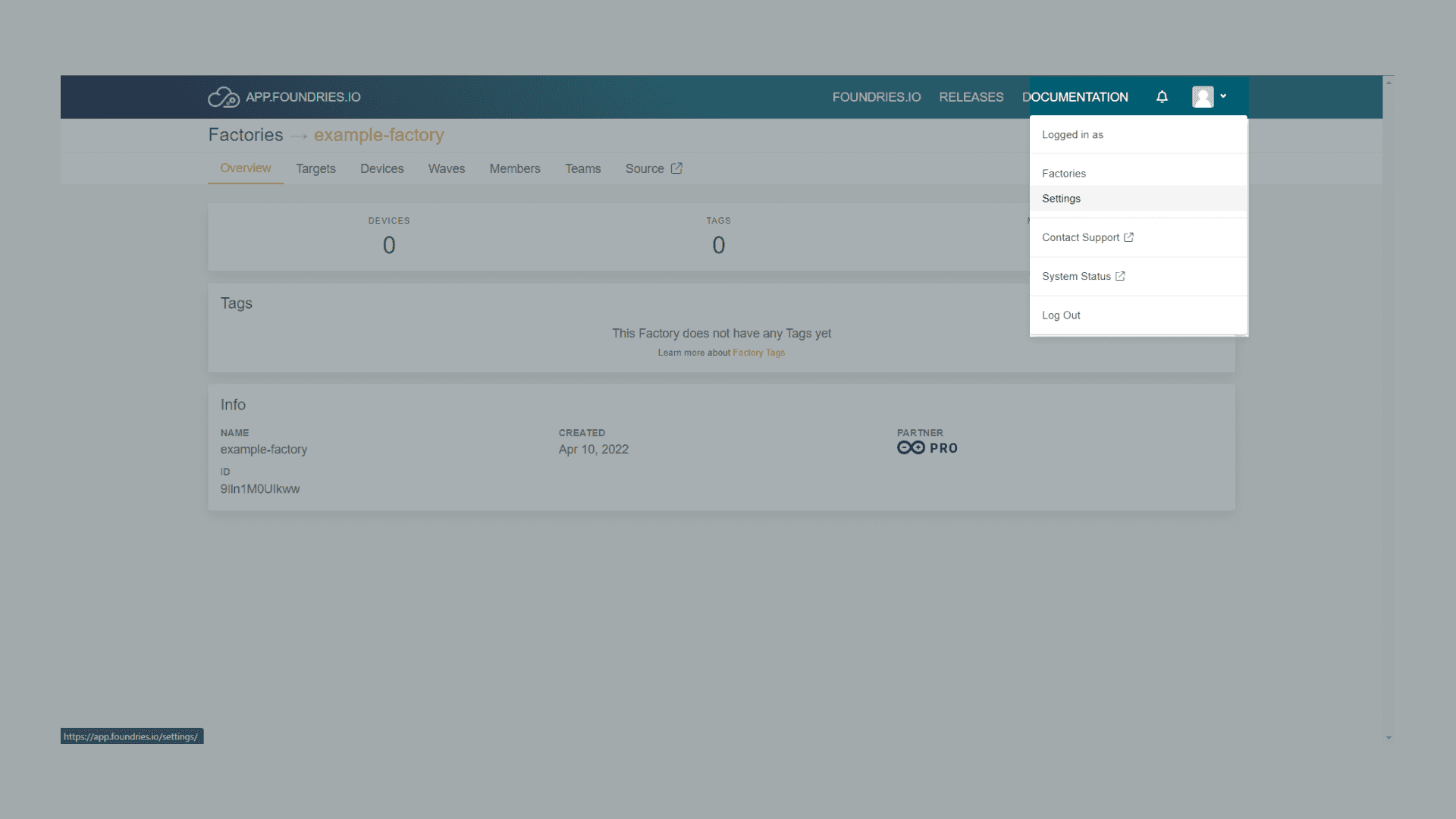 To pull or push repositories, you have to generate an API key. This is done by going to the user settings on the Factory page. Click on the user drop-down menu, go into the tokens page and follow the steps of creating a new API key. When creating the API key, please make sure to select the "Use for source code access" option and the correct Factory that you want to use the key for. This token will be used as the password for all git operations while the username can be anything, except an empty string.