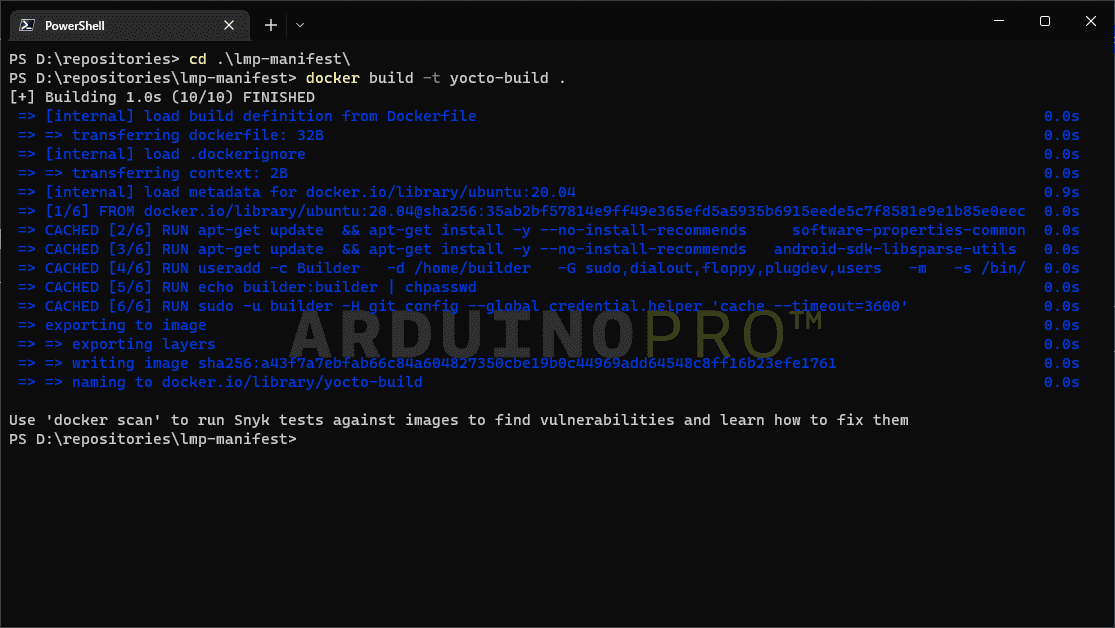 After cloning the lmp-manifest repository successfully, we will proceed to build the Docker Image using following command sequence: