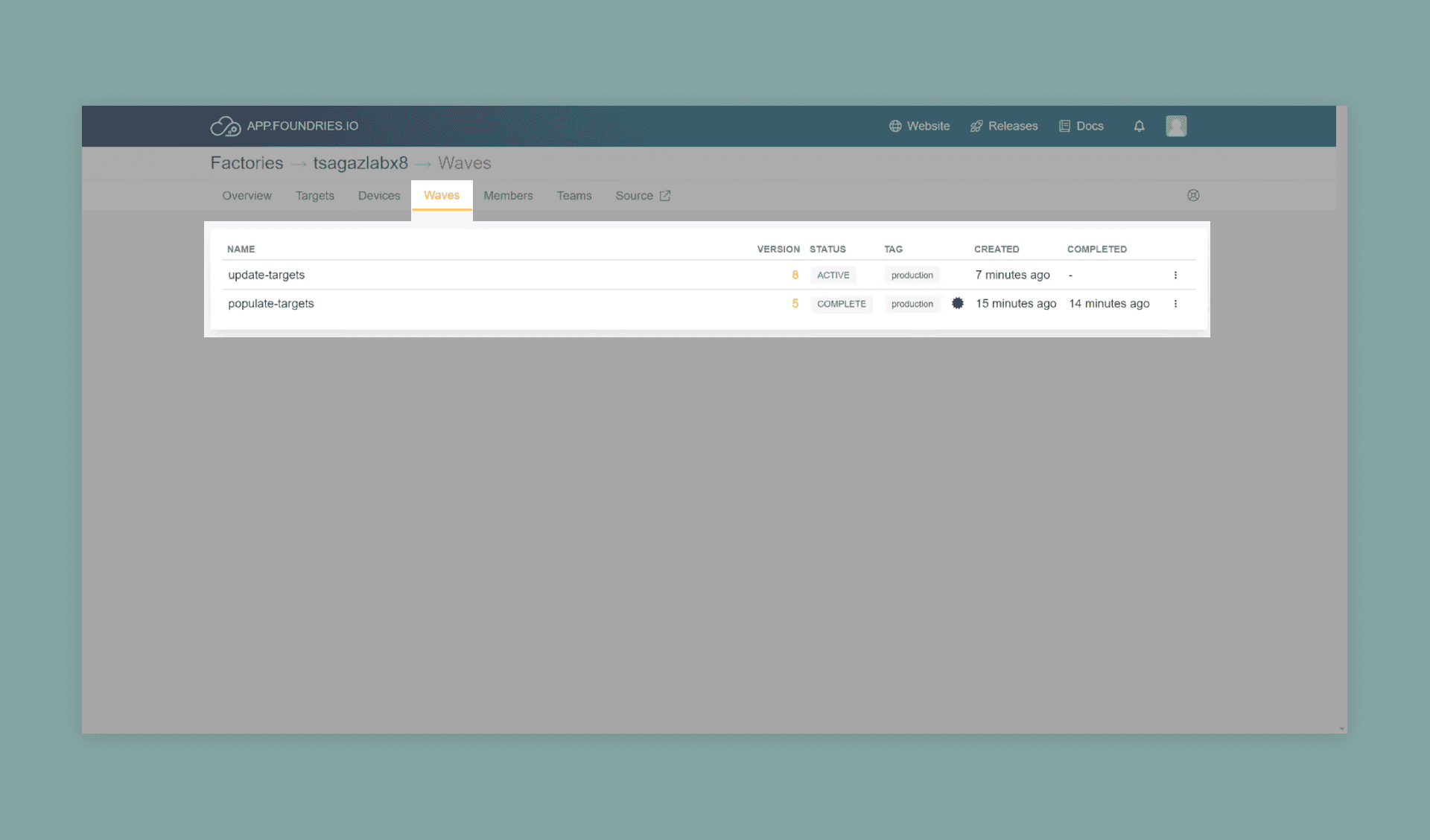 In this tutorial, we first looked at what is required to use the Wave tool. We then went through the process of creating a Wave and device group. Then we pushed a target to the device group using the Wave tool. With this, you have learned to use FoundriesFactory® Waves Fleet Management for multiple Portenta X8.